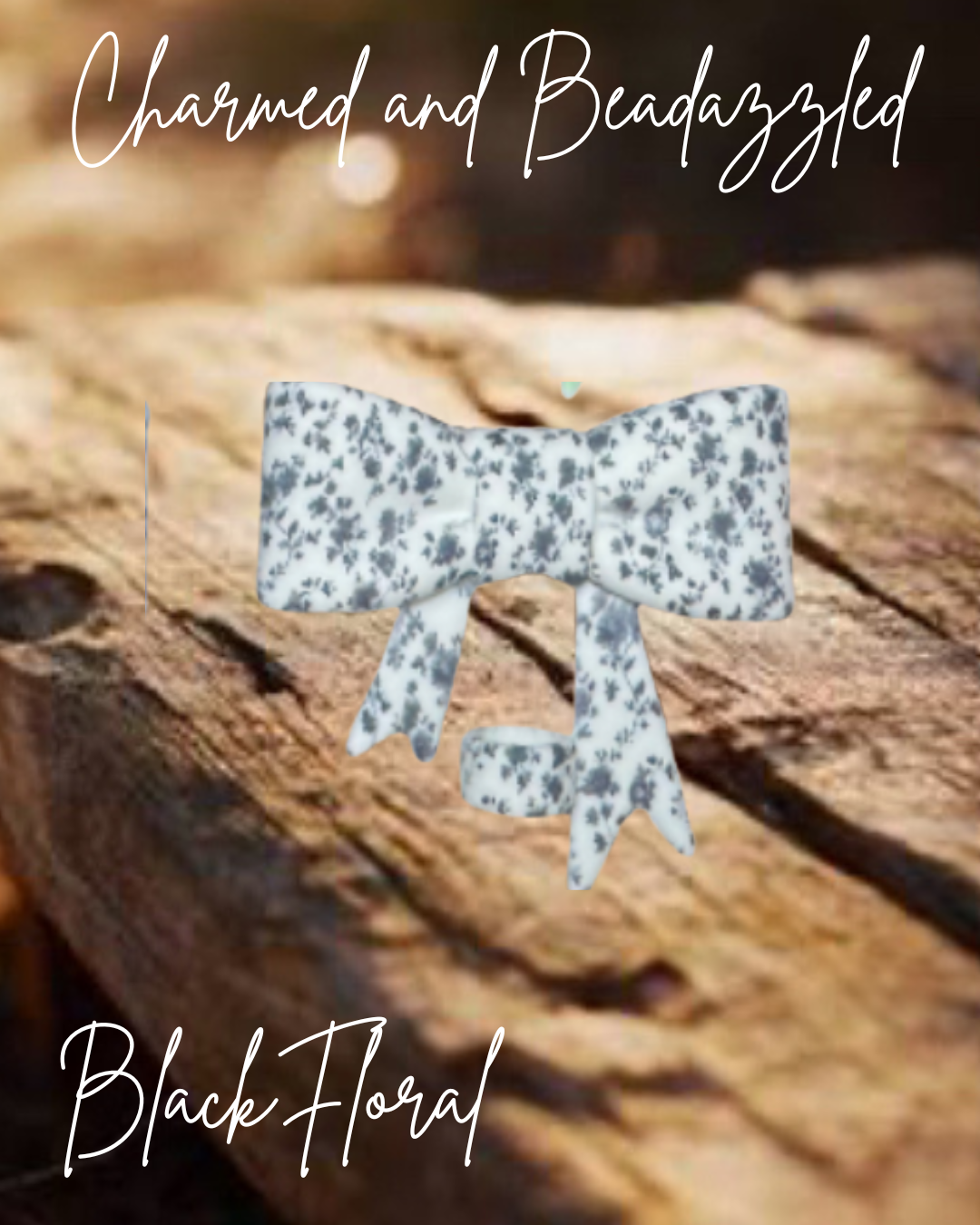 - Black Floral Bow Straw Topper, Straw Charm, Tumbler Handle, Tumbler Charm, Stylish Pen, Wallet/Keychain, Unique Tumbler Keychain (with a top that comes off for stashing small items like chapstick!), Black Floral Tumbler Boot, Large Bow Straw Charm