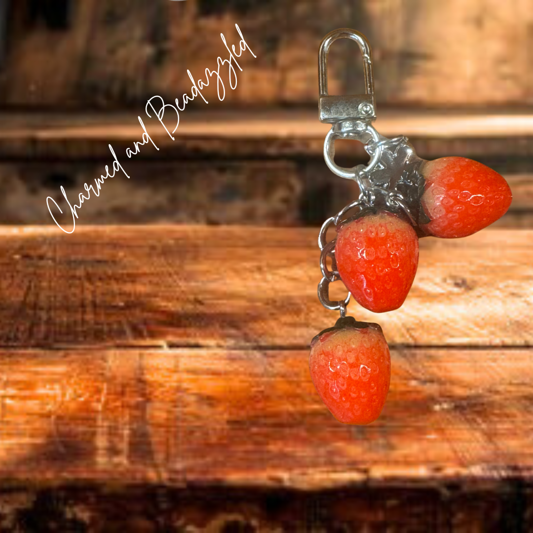 This stylish accessory brings a fruity flair to your bag, purse, or keys. With its vibrant red strawberries, it's the perfect way to add a charming touch to your everyday essentials!