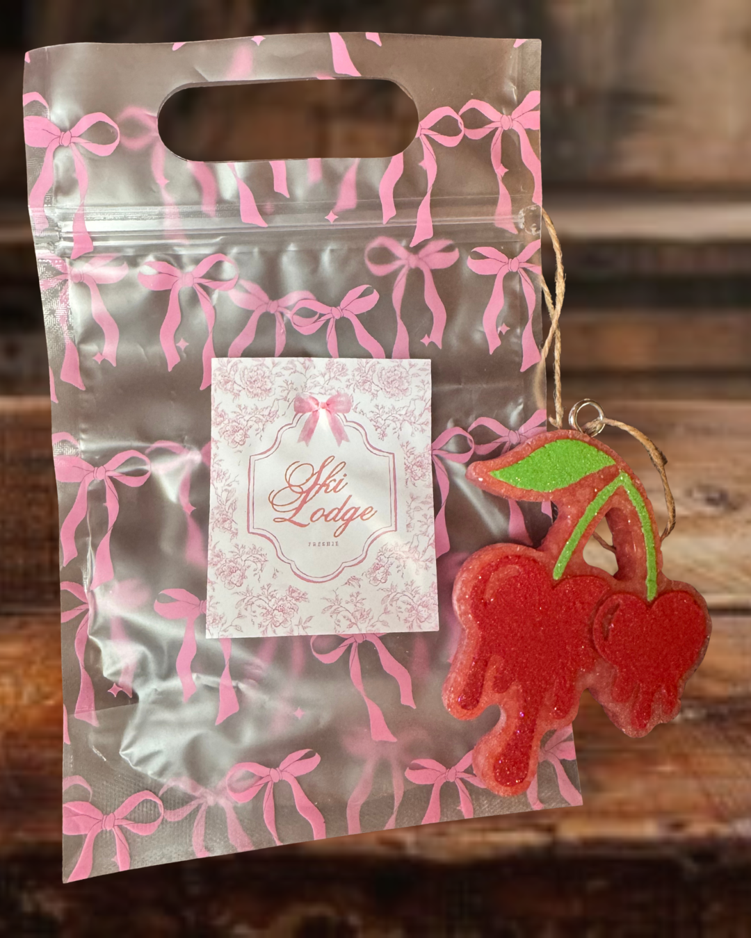 🚗✨ Transform your car into a haven with our Cherry Freshie, featuring the uplifting Ski Lodge scent! 🌞
