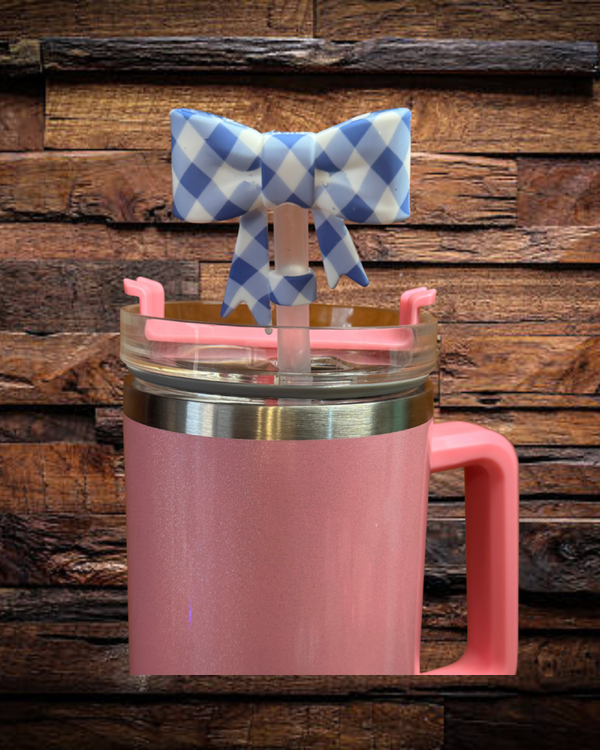 Large Bow Blue Picnic Straw Topper