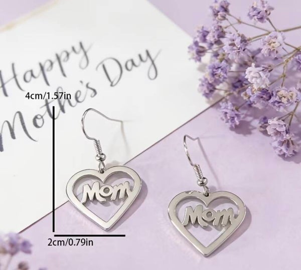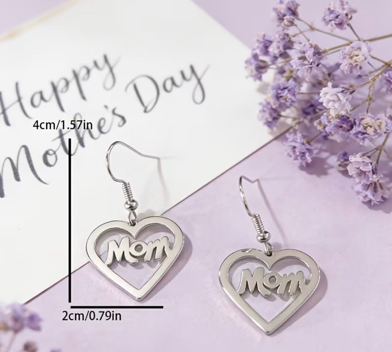 Celebrate the special bond with these elegant 'MOM' Letter Dangle Earrings, designed to add a touch of love to any outfit. Crafted in lustrous silver, these heart-shaped hoops are perfect for showcasing your appreciation in a stylish way. Whether you're dressing up for a casual day out or looking for the perfect accessory to complement your spring and summer wardrobe, these earrings are versatile enough for any occasion.