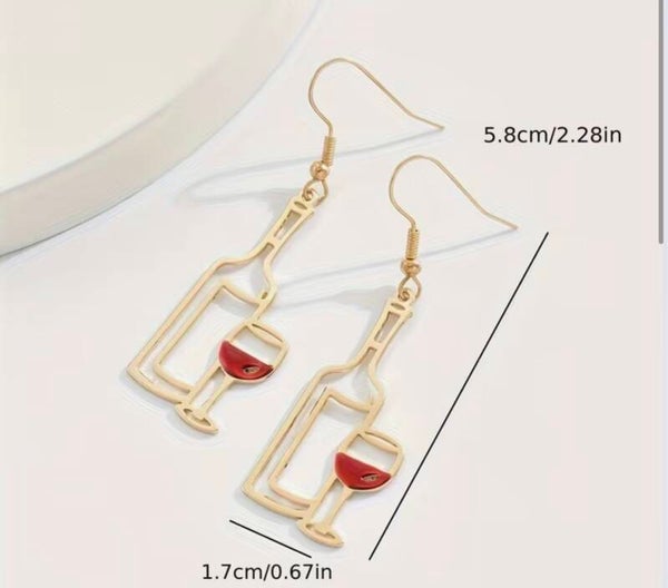 Discover the perfect blend of whimsy and elegance with our Wine Glass and Bottle Earrings, designed to captivate and charm. These stylish earrings feature creatively designed hollow patterns that artfully echo the shapes of a wine glass and bottle, making them a standout accessory for any occasion.