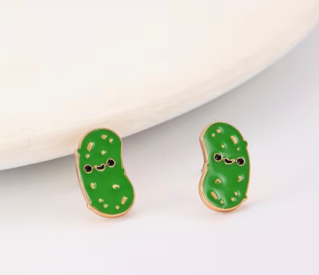 Add a dash of whimsy to your accessory collection with our Pair of Cute, Simple, and Unique Cartoon Pickle Earrings. These delightful earrings feature an adorable cartoon pickle design, making them a fun statement piece for women who love to express their personality through jewelry.
