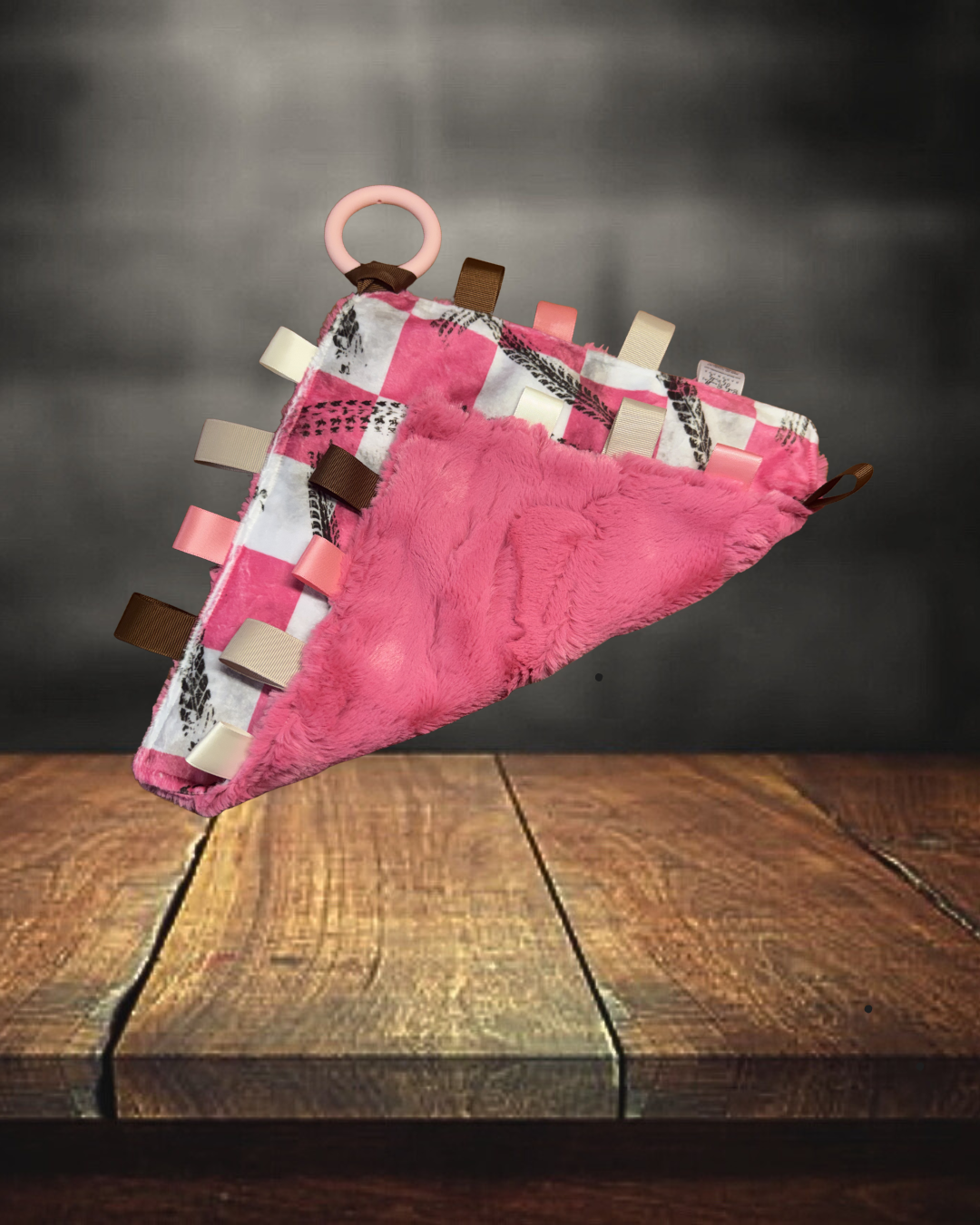 Discover the perfect companion for your little racer with our Pink Dirt Track Lovie, complete with an attached teething ring. This charming lovie is designed with a unique dirt track pattern in soft, soothing pink tones, making it a one-of-a-kind treasure for your baby. Crafted with high-quality materials, it ensures both comfort and durability, providing a cozy touch while soothing your baby's gums. The teething ring is securely attached, offering a practical solution for teething discomfort. Parents will appreciate the thoughtful design that combines functionality with a playful aesthetic, making it a delightful addition to any nursery. Give your baby the comfort they deserve with this exceptional lovie, uniquely tailored to stand out and keep your little one content.